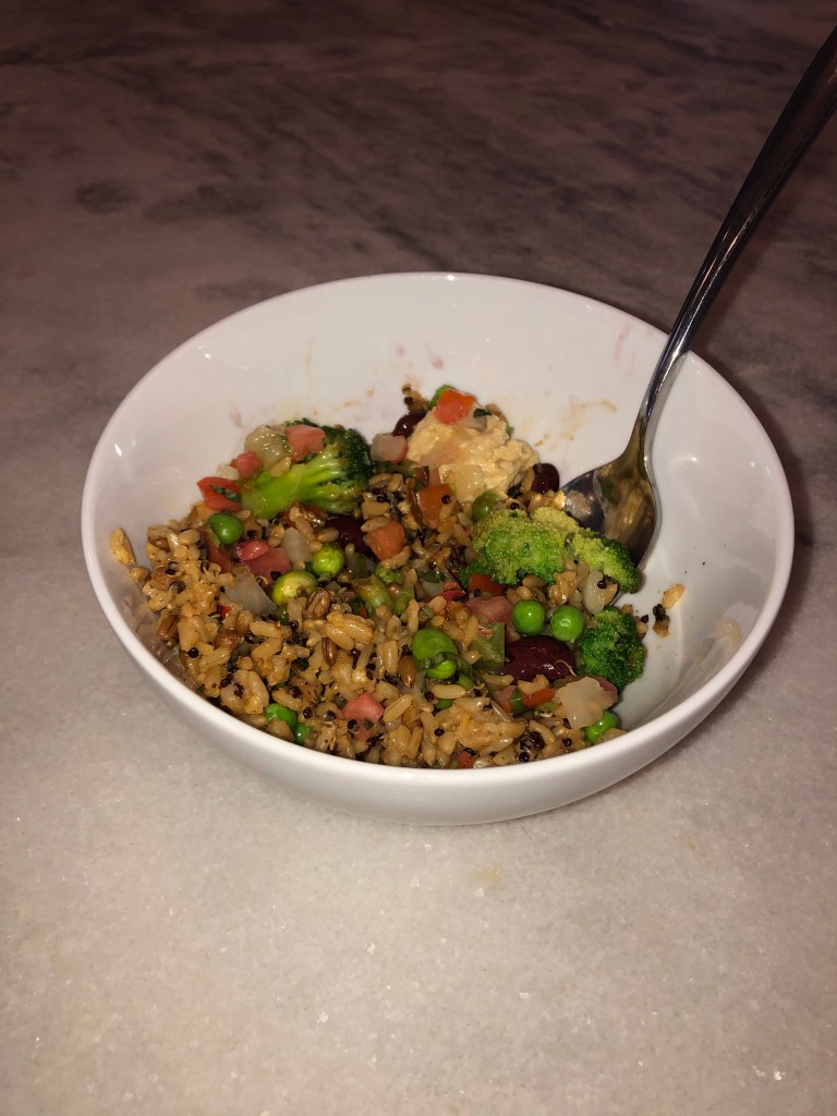 I literally heated up all of the ingredients in the microwave and added the random toppings I happened to have in my fridge.
